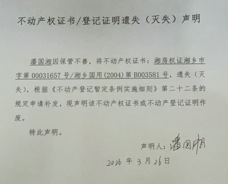潘國湘(不動產遺失聲明)