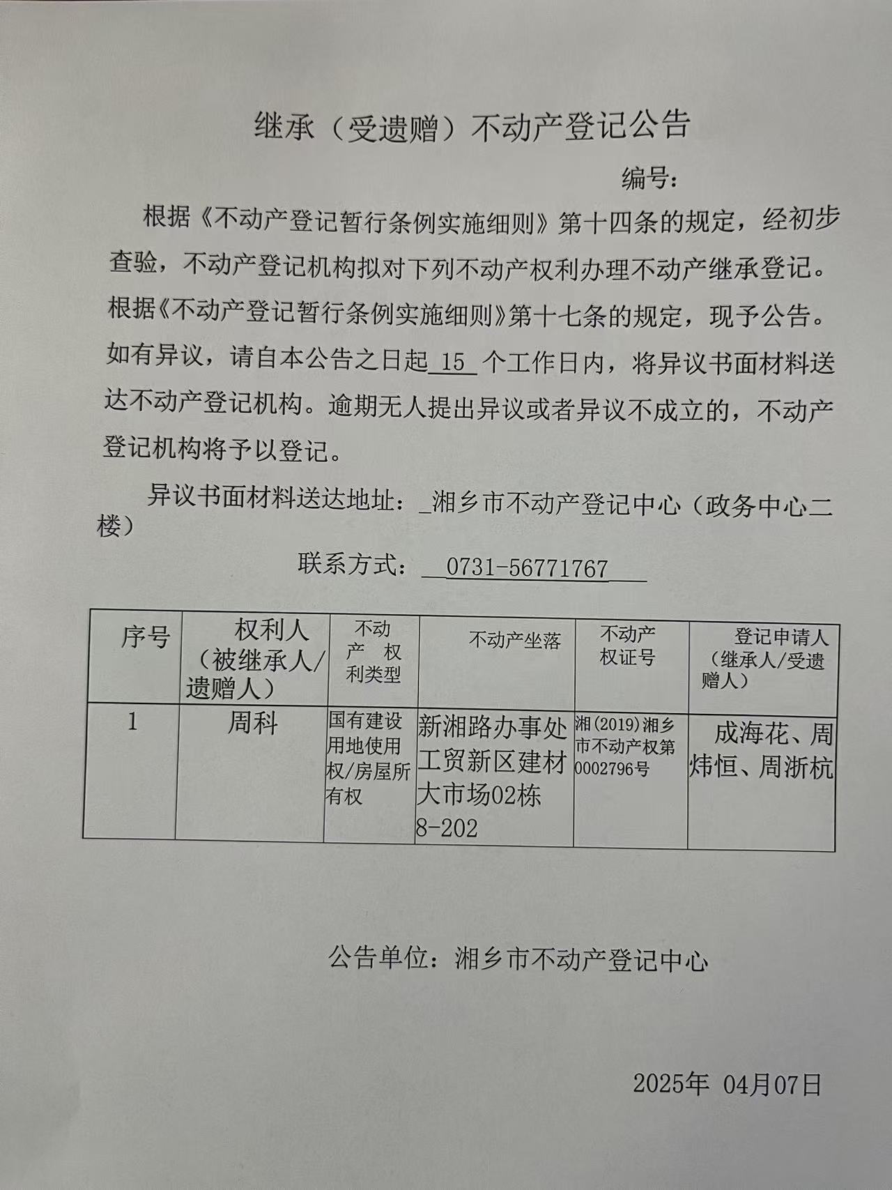 不動產繼承公告(周科)
