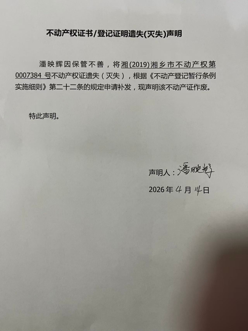 索引號:4303000006/2026-1427070 發布機構:不動產信息公開 發布目錄:不動產登記公告