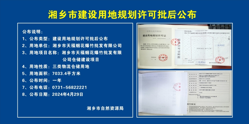 湘鄉市天福煙花爆竹批發有限 公司倉儲建設項目