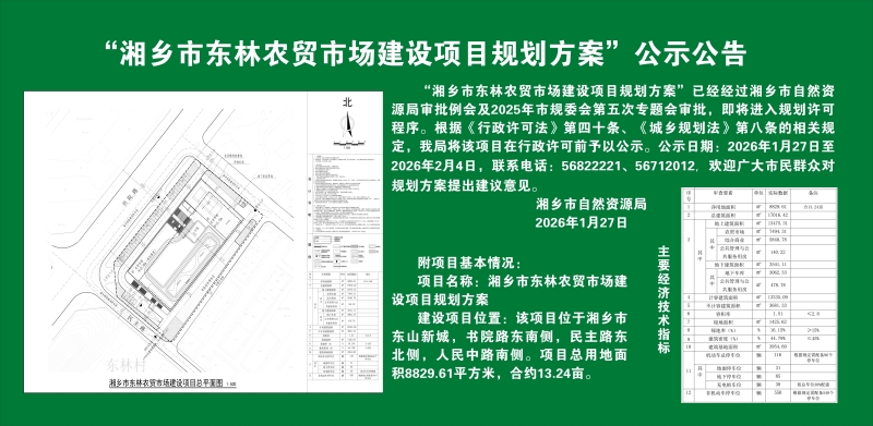 湘鄉(xiāng)市東林農(nóng)貿(mào)市場(chǎng)建設(shè)項(xiàng)目規(guī)劃方案公示公告