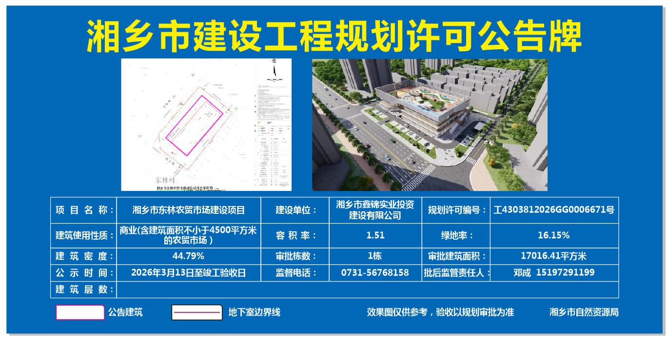湘鄉市東林農貿市場建設項目建設工程規劃許可公告