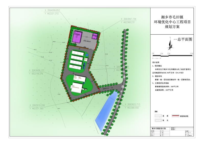、新建一棟一層垃圾壓縮站和一棟一層管理用房。