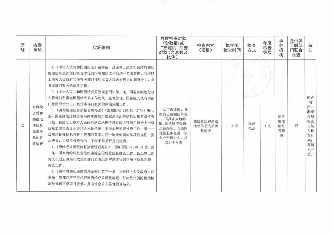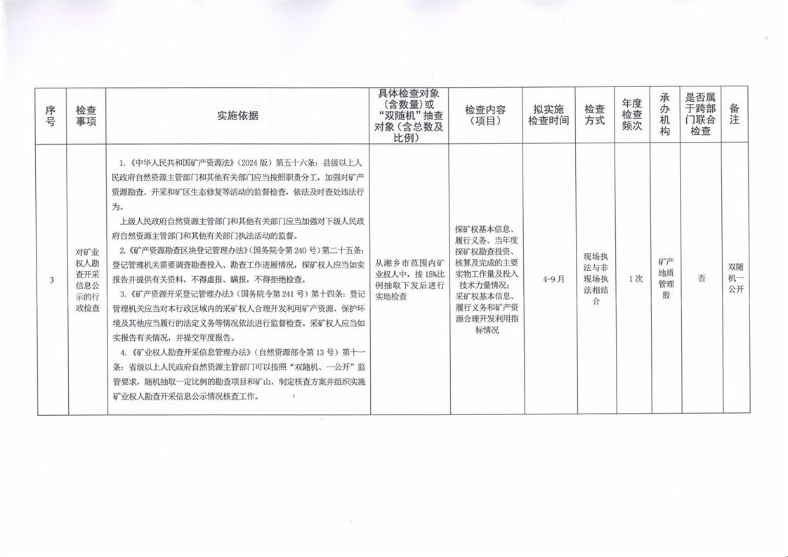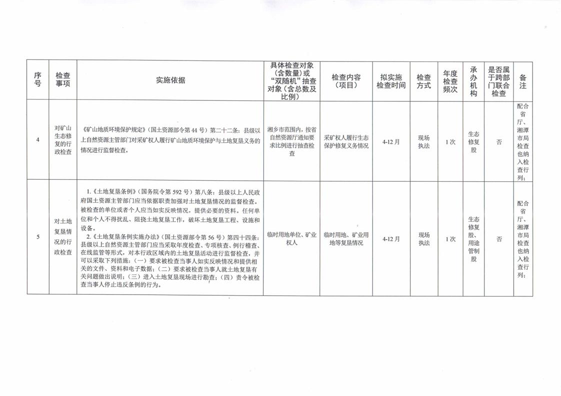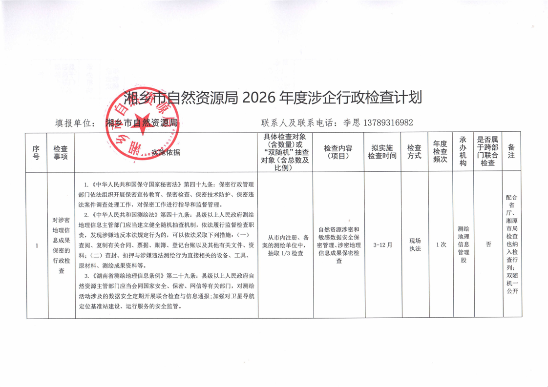 湘鄉市自然資源局2026年度涉企行政檢查計劃