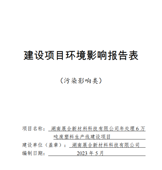 湖南展合新材料科技有限公司年處理 6 萬(wàn)噸廢塑料生產(chǎn)線建設(shè)項(xiàng)目建設(shè)項(xiàng)目環(huán)境影響報(bào)告表公示
