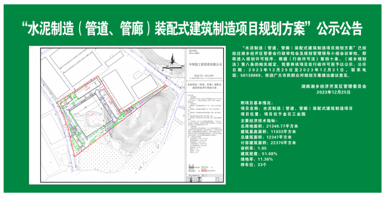 “水泥制造(管道、管廊)裝配式 建筑制造項(xiàng)目規(guī)劃方案”公示公告
