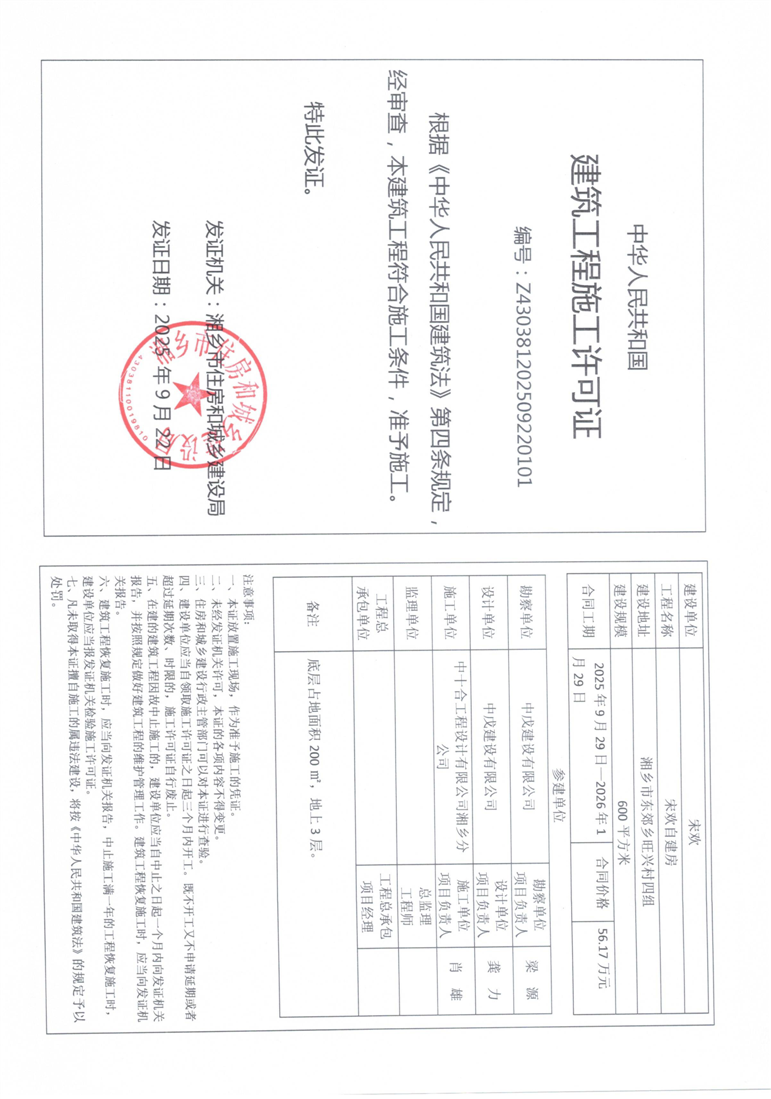 索引號:4303000006/2025-1393049 發布機構:行政執法 發布目錄:建筑工程施工許可
