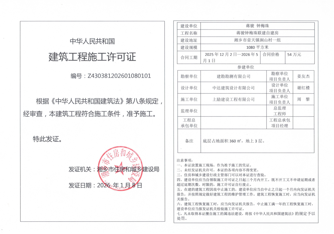 索引號:4303000006/2026-1411714 發布機構:行政執法 發布目錄:建筑工程施工許可