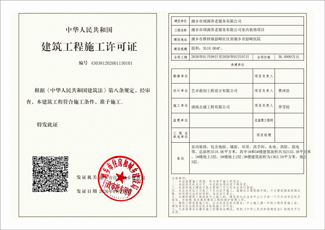索引號:4303000006/2026-1412625 發布機構:行政執法 發布目錄:建筑工程施工許可