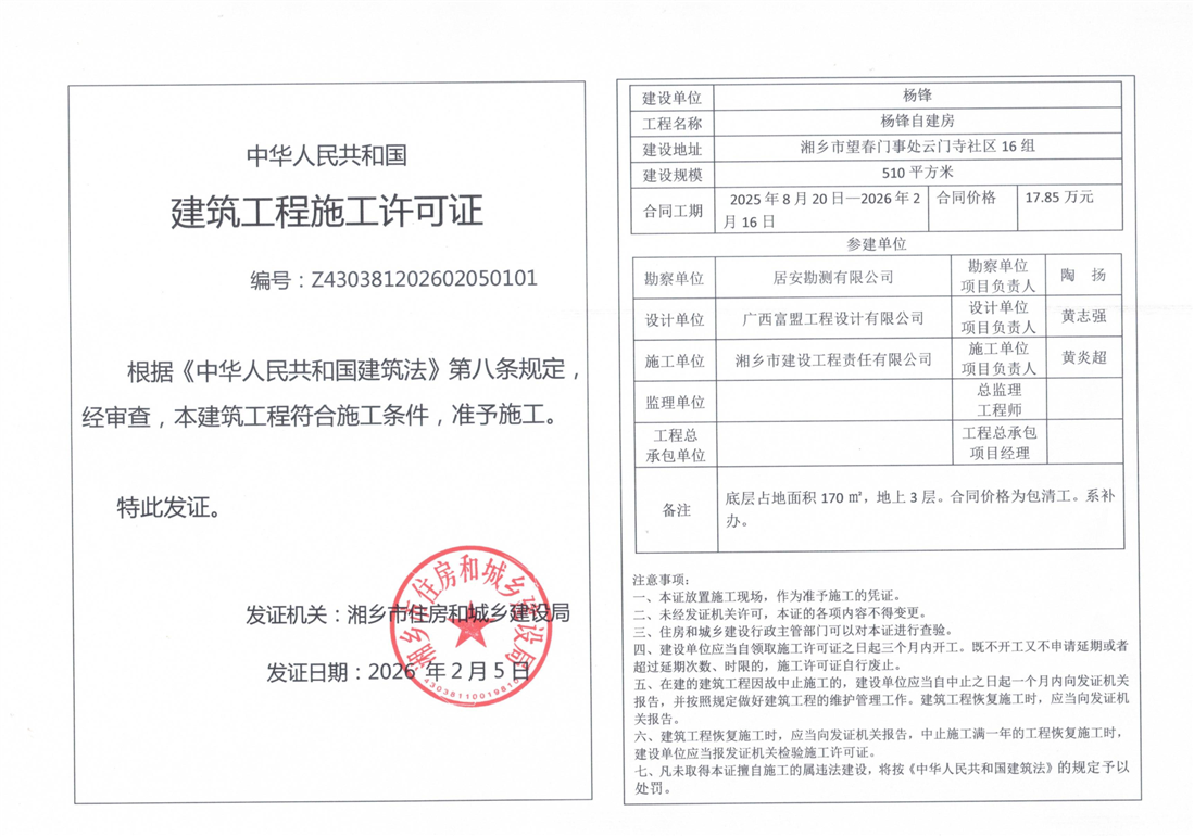 索引號(hào):4303000006/2026-1417558 發(fā)布機(jī)構(gòu):行政執(zhí)法 發(fā)布目錄:建筑工程施工許可