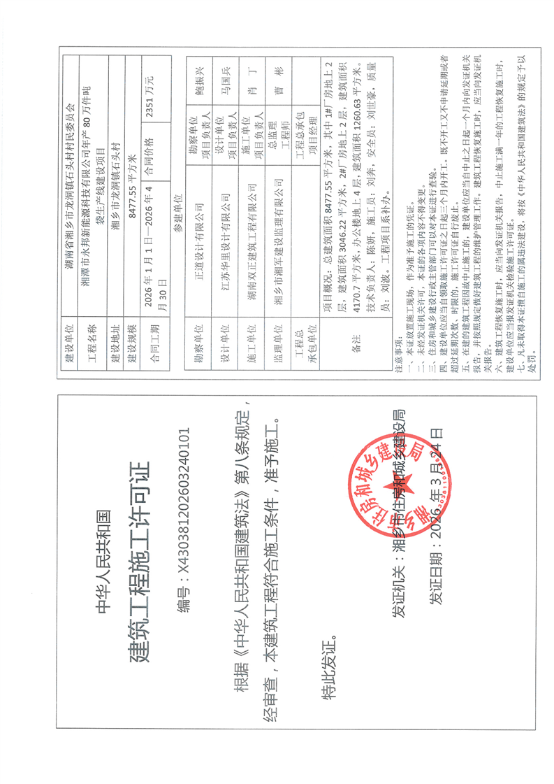 湘潭市永邦新能源科技有限公司年產(chǎn)80萬件噸 袋生產(chǎn)線建設(shè)項(xiàng)目