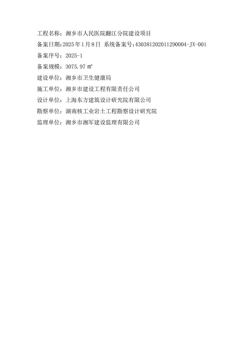 湘鄉市人民醫院翻江分院建設項目2025-01
