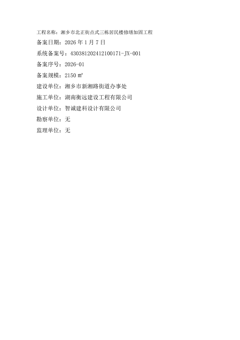 湘鄉(xiāng)市北正街點(diǎn)式三棟居民樓修繕加固工程