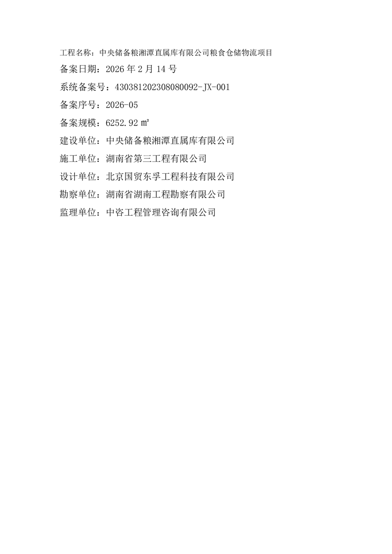 中央儲備糧湘潭直屬庫有限公司糧食倉儲物流項目