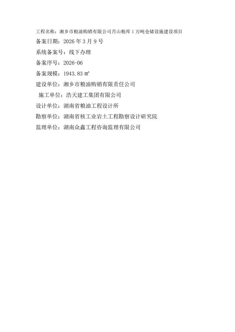 湘鄉市糧油購銷有限公司月山糧庫1萬噸倉儲設施建設項目