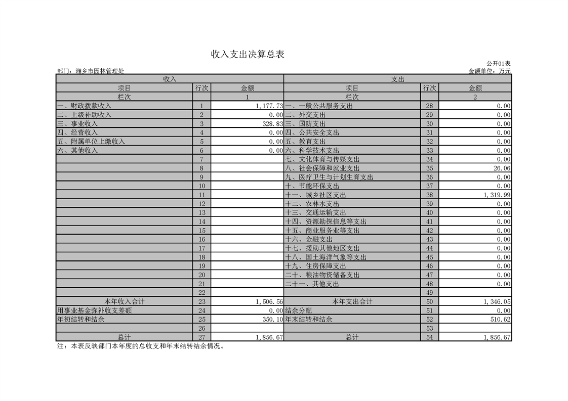 湘鄉(xiāng)市園林管理處2018年度部門決算公開(kāi)