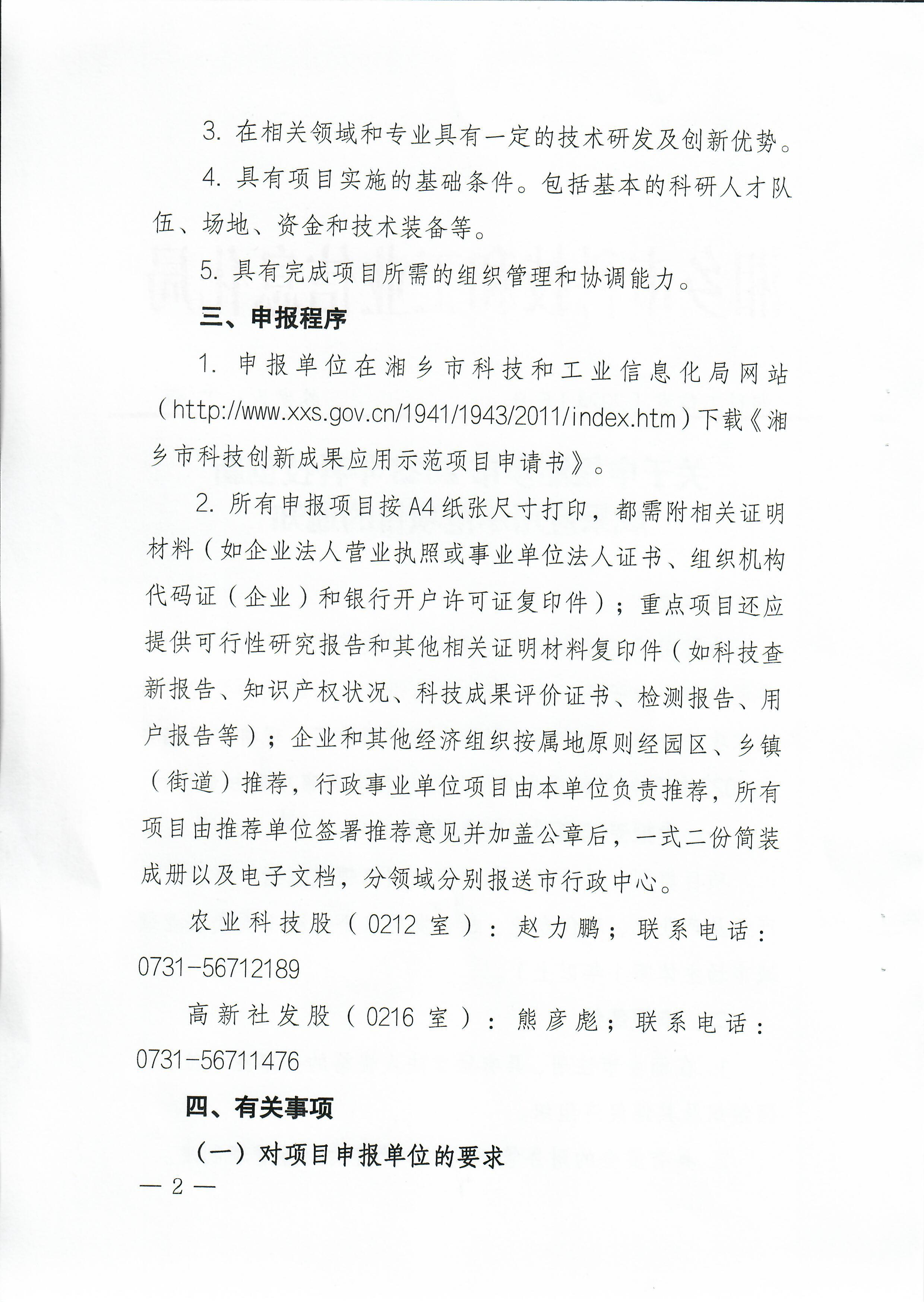 1. 申報單位在湘鄉市科技和工業信息化局網站(http://www.yqfywz.cn/1941/1943/2011/index.htm)下載《湘鄉市科技創新成果應用示范項目申請書》。