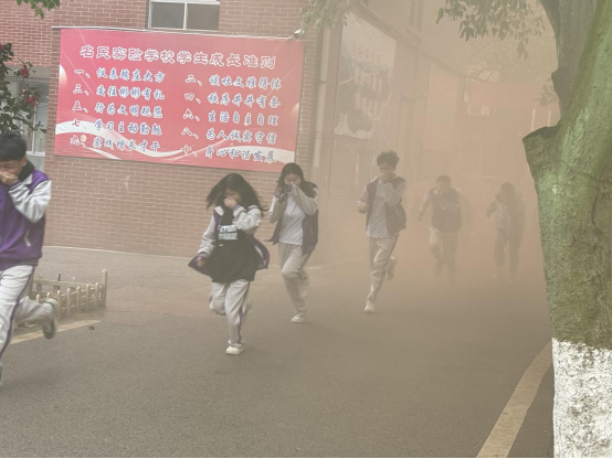 校園里警報聲突然響起,響徹整個校園,各班學生在班主任的帶領下按照規定的路線和順序開始疏散撤離。全體師生組織有序, 不足三分鐘便安全撤離。到達指定安全區域后,班主任當即清點并迅速報告各班應到人數,整個疏散過程井然有序、安全規范。