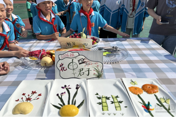 二、三年級(jí)進(jìn)行的是水果拼盤(pán)比賽。一道道創(chuàng)意無(wú)限、制作精美的水果拼盤(pán)給我們無(wú)限驚喜和美的享受。