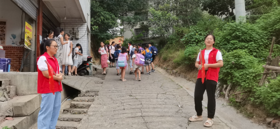 每天上學和放學時段,學校校門至街區路段坡度陡峭,上下坡安全和路口交通壓力巨大。為了確保孩子們的安全,家長們積極響應學校的號召,自愿加入護學崗隊伍。他們不畏風雨,不懼烈日,準時到崗,認真履行職責。