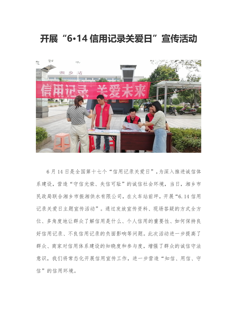 開展“6.14信用記錄關愛日”宣傳活動
