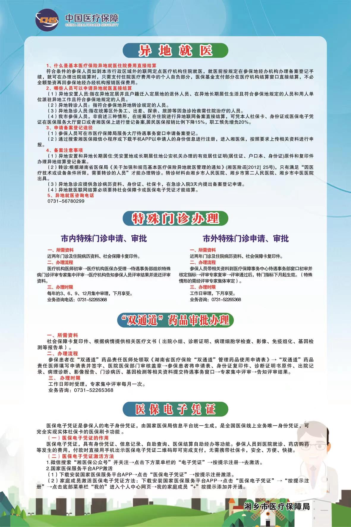 醫(yī)保政策(異地就醫(yī)、特殊門診辦理、“雙通道”藥品審批辦理、醫(yī)保電子憑證)