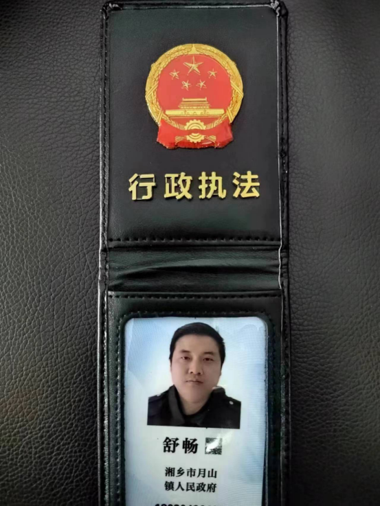 舒暢、男、執法證號:18030496182.工作單位:湘鄉市月山鎮人民政府