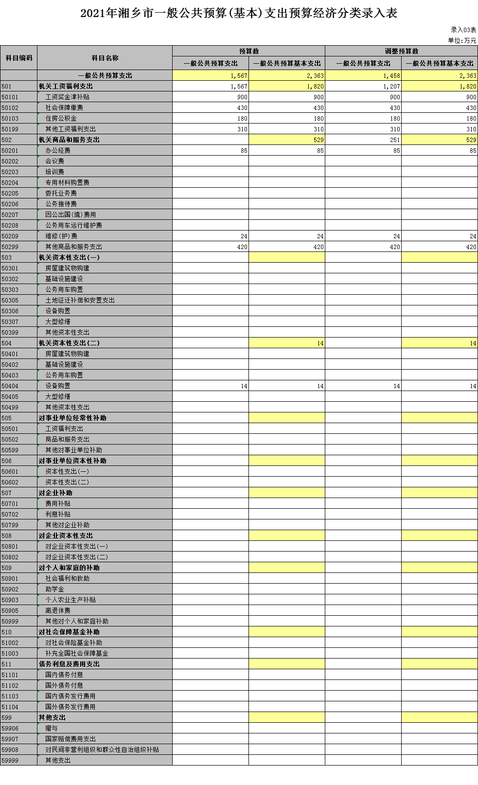 2021年湘鄉(xiāng)市一般公共預算(基本)支出預算經(jīng)濟分類錄入表