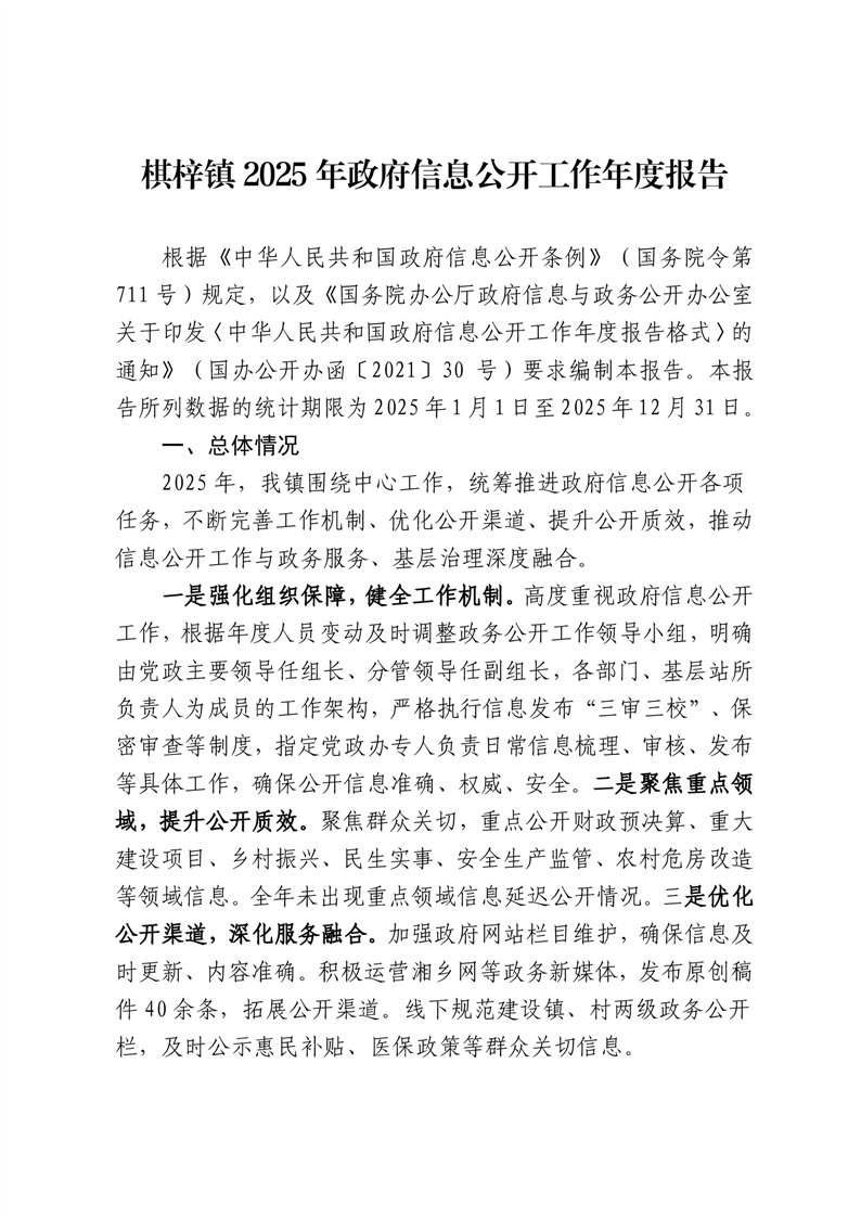 棋梓鎮2025年政府信息公開工作年度報告