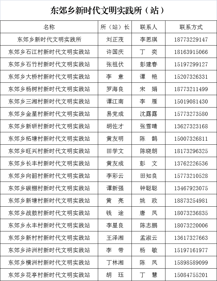 東郊鄉新時代文明實踐所(站)聯系人