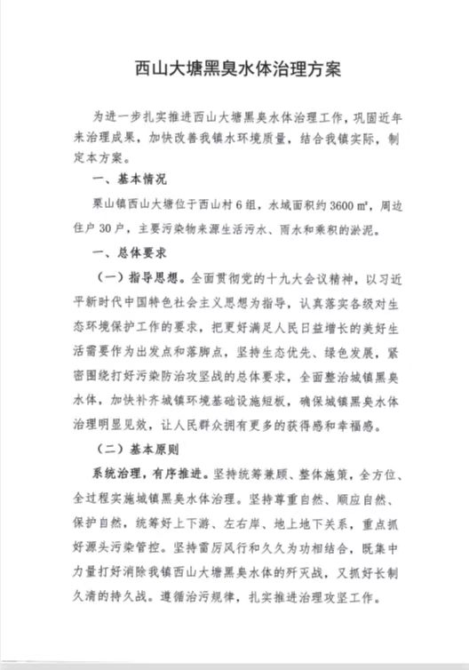 栗山鎮(zhèn)西山大塘黑臭水體治理方案
