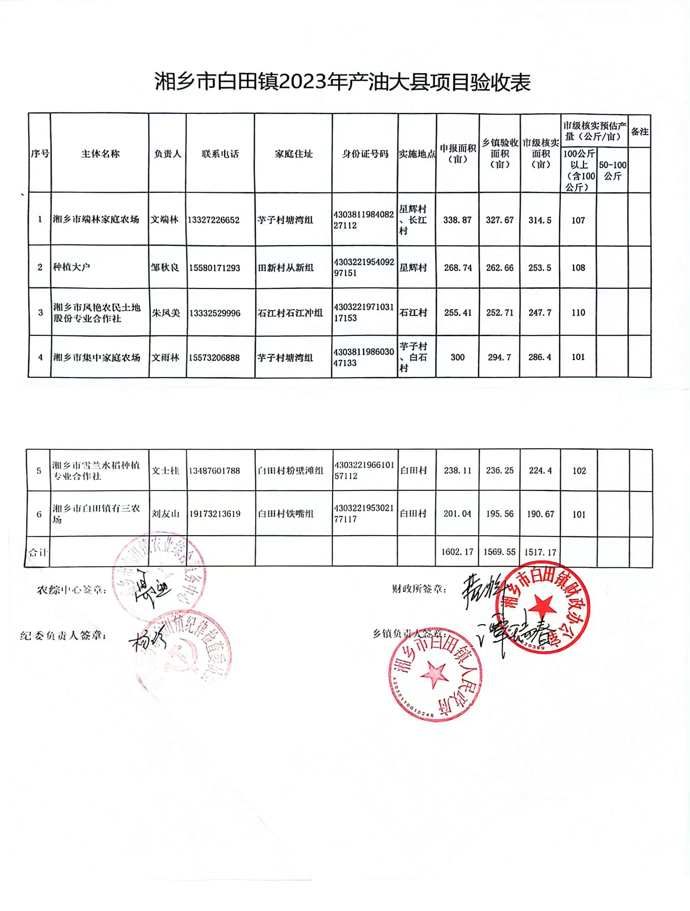 湘鄉市白田鎮2023年產油大縣項目驗收表