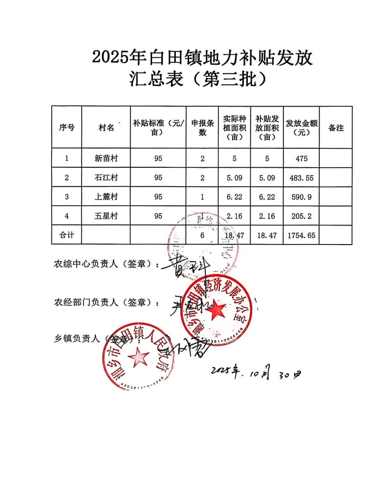 2025年白田鎮(zhèn)地力補貼發(fā)放匯總表(第三批)