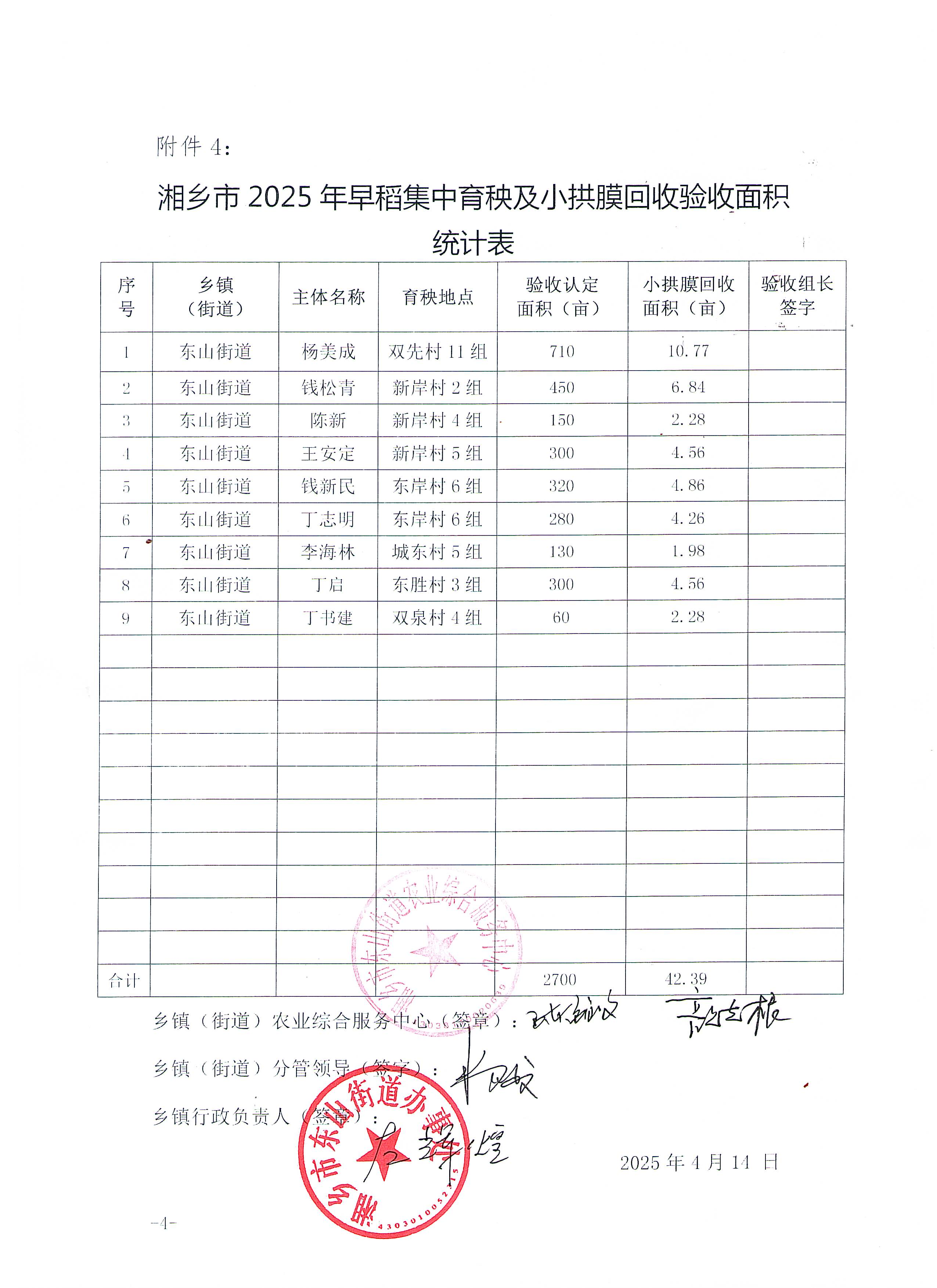 湘鄉(xiāng)市2025年早稻集中育秧及小拱膜回收驗(yàn)收面積統(tǒng)計(jì)表
