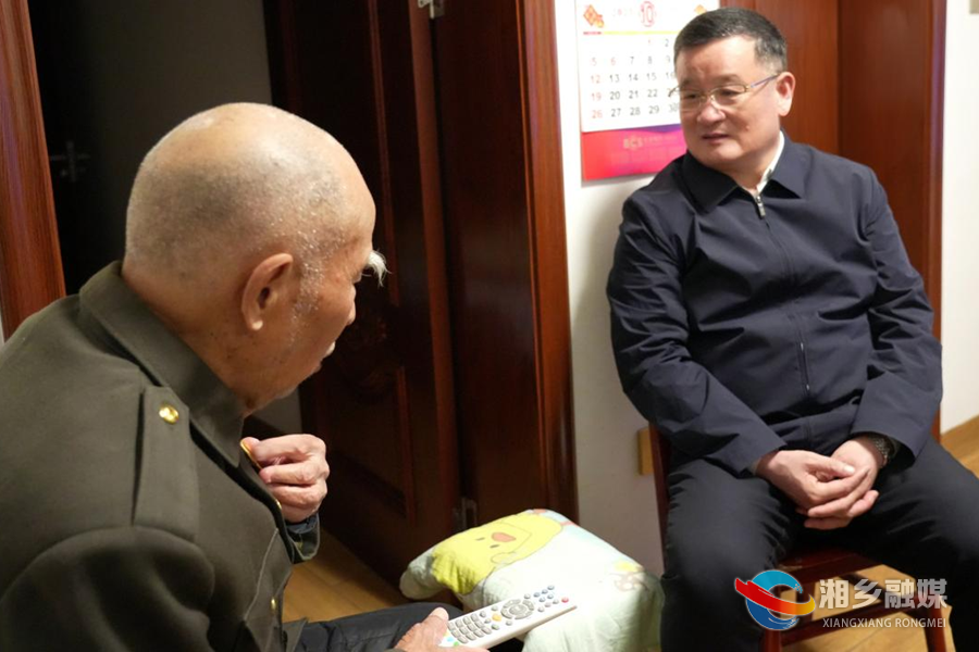 隨后,趙新文一行來到 95 歲高齡的譚發松家中。雖已年過九旬,譚老依舊精神矍鑠、思路清晰,談及往昔崢嶸歲月時眼中閃爍著光芒。趙新文與譚老促膝而坐,關切詢問其飲食起居與身體健康狀況,認真傾聽他講述 1949 年參加工作、1951 年入黨,以及投身抗美援朝戰爭、轉業后扎根地方建設的奮斗故事。離休后的譚老始終不忘黨員初心,主動發揮余熱,堅持走進中小學宣講革命傳統,用親身經歷為青少年播撒紅色種子。趙新文深受觸動,他表示,譚老用一生踐行黨員使命,用行動詮釋家國情懷,這份堅守令人敬佩。他衷心感謝譚老為黨和國家事業、為湘鄉發展凝聚的精神力量,并祝愿老人福壽綿長、生活安康。