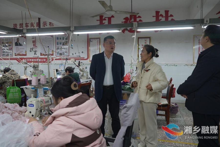 趙新文在湘鄉內秀服飾有限公司走訪調研。