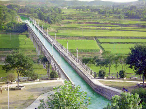 灌區(qū)不僅有灌溉、發(fā)電、通航之利,也是優(yōu)美的人文景觀。在全長240公里的干渠上共有渡槽26座,總長6243米,隧洞10孔,總長6545米,無論它們所沉淀的內在精神還是塑造的外在雄姿都令游人驚嘆。