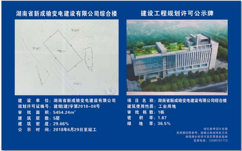 湖南省新成輸變電建設有限公司綜合樓 建設工程規劃許可公示
