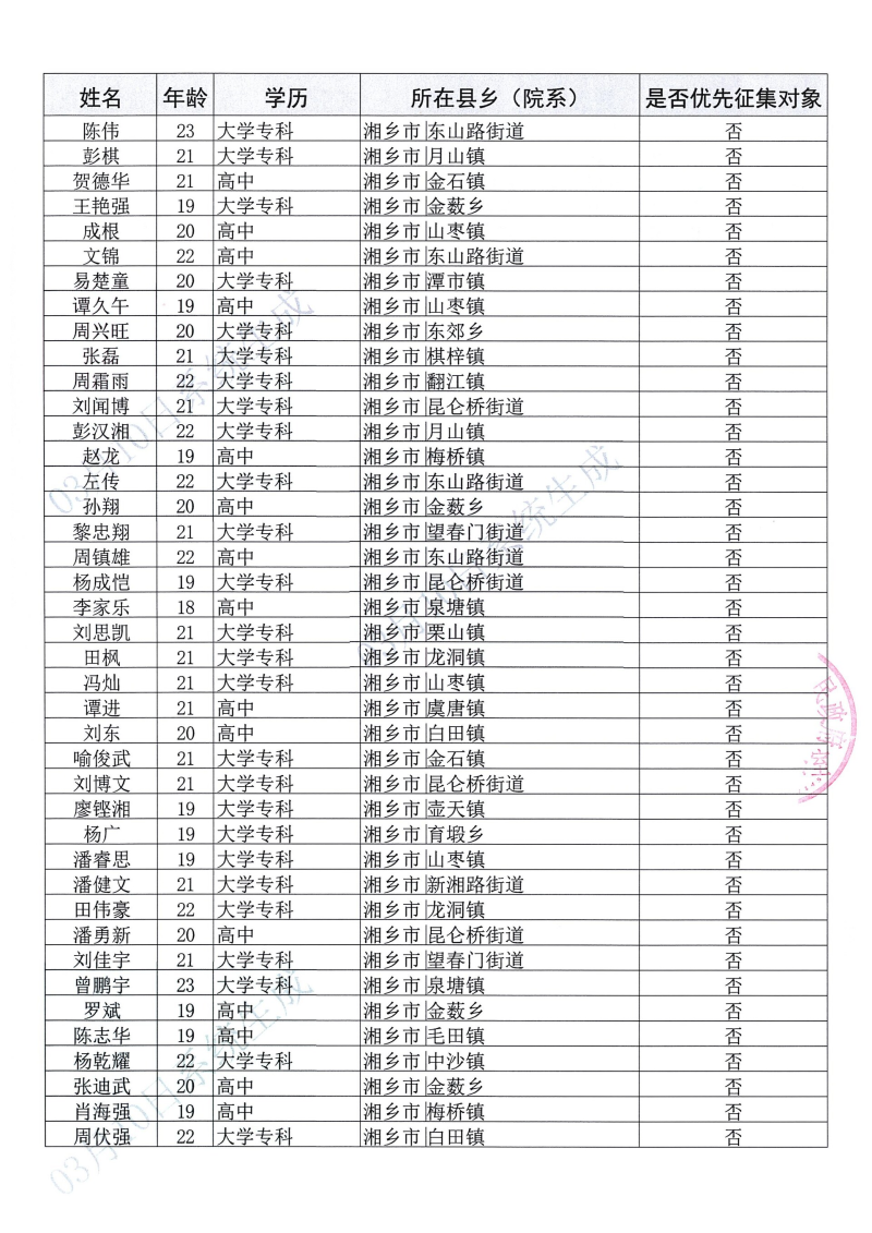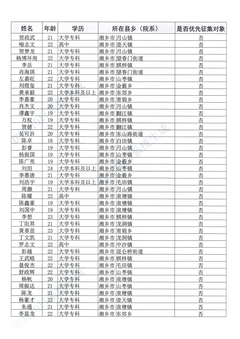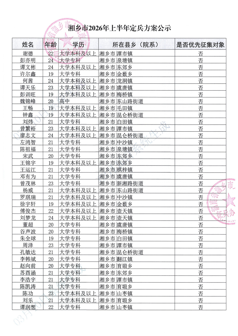 湘鄉市2026年上半年定兵方案公示