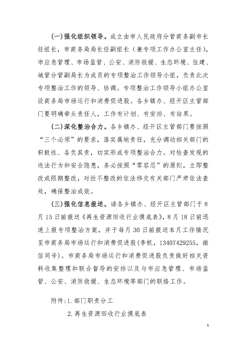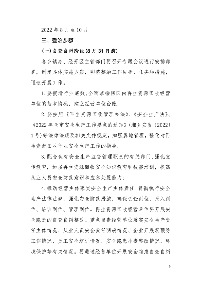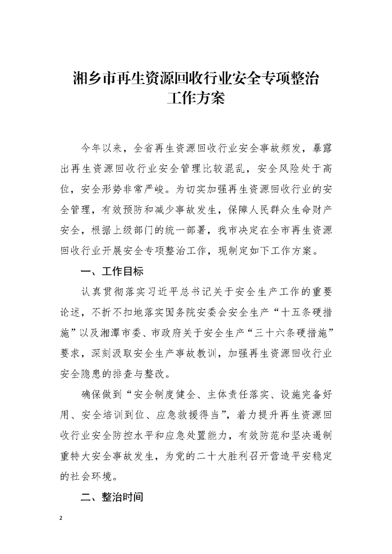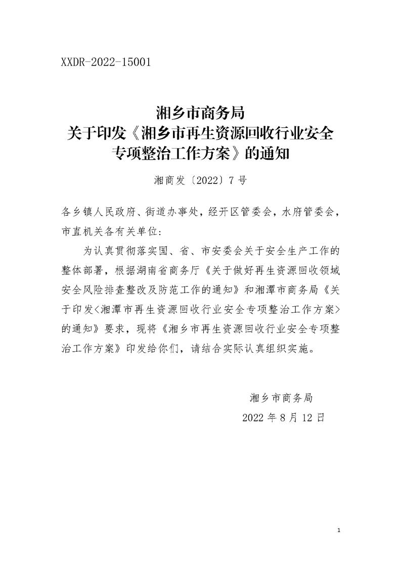 湘鄉市商務局關于印發《湘鄉市再生資源回收行業安全專項整治工作方案》的通知