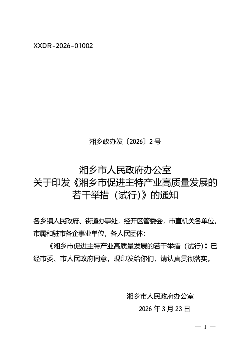 湘鄉(xiāng)市人民政府辦公室 關(guān)于印發(fā)《湘鄉(xiāng)市促進(jìn)主特產(chǎn)業(yè)高質(zhì)量發(fā)展的若干舉措(試行)》的通知