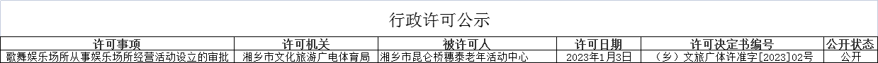 (鄉)文旅廣體許準字[2023]02號-湘鄉市昆侖橋穗泰老年活動中心