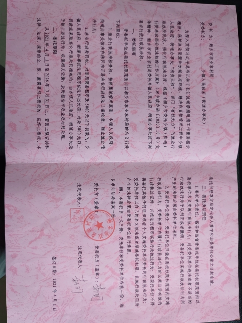 關于對湘鄉市農業農村局和水利局行政執法委托書的公示