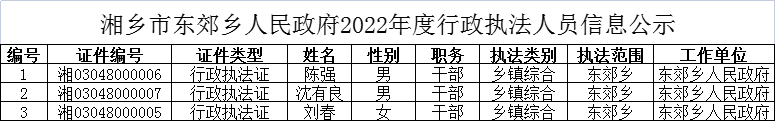 湘鄉市東郊鄉人民政府2022年度行政執法人員信息公示