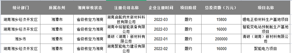 2022年1-6月省級核定通過的湘商回歸項目匯總