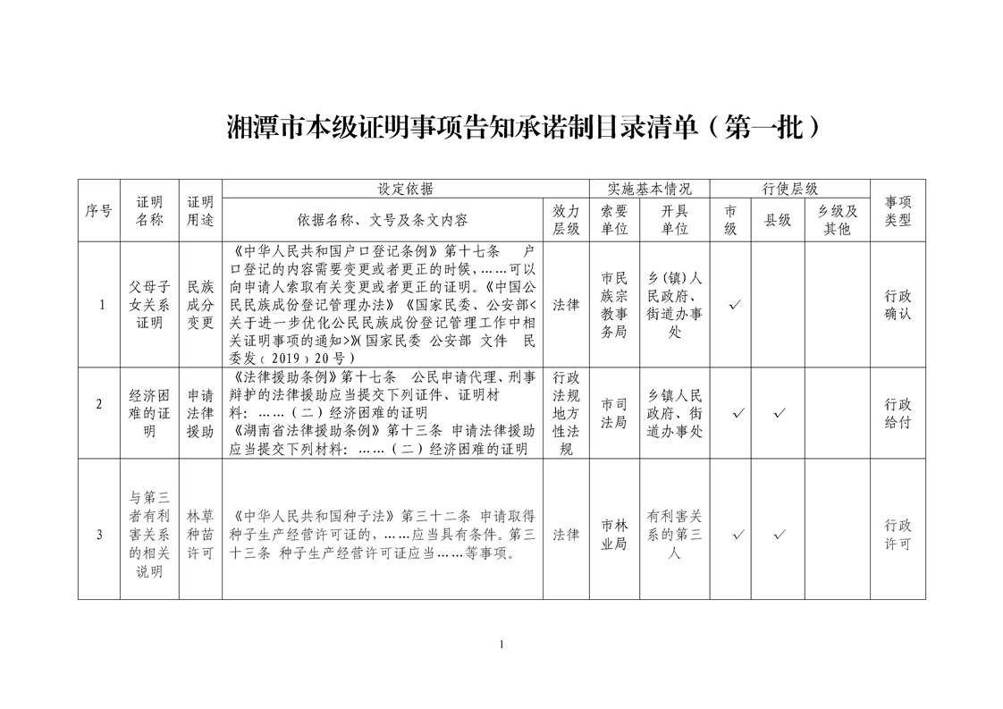 湘潭市本級證明事項(xiàng)告知承諾制目錄清單(第一批)