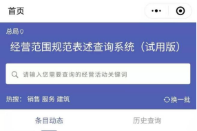 2.移動手機端可在微信小程序中搜索“經營范圍規范表述查詢”