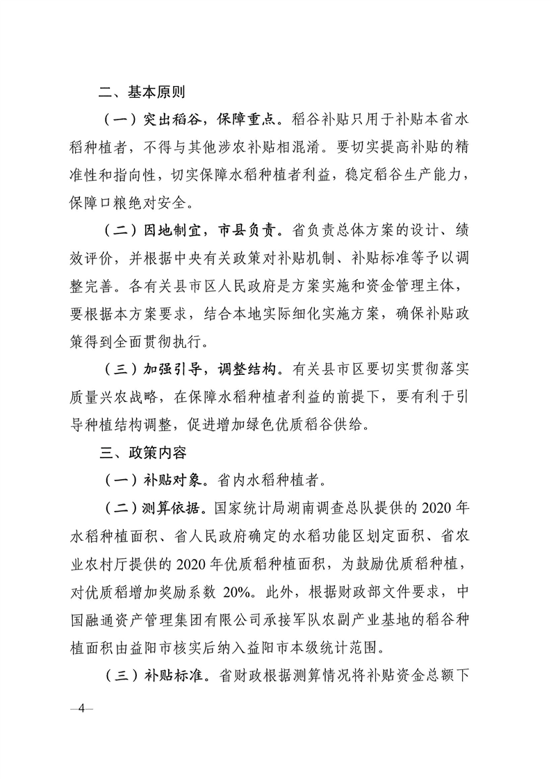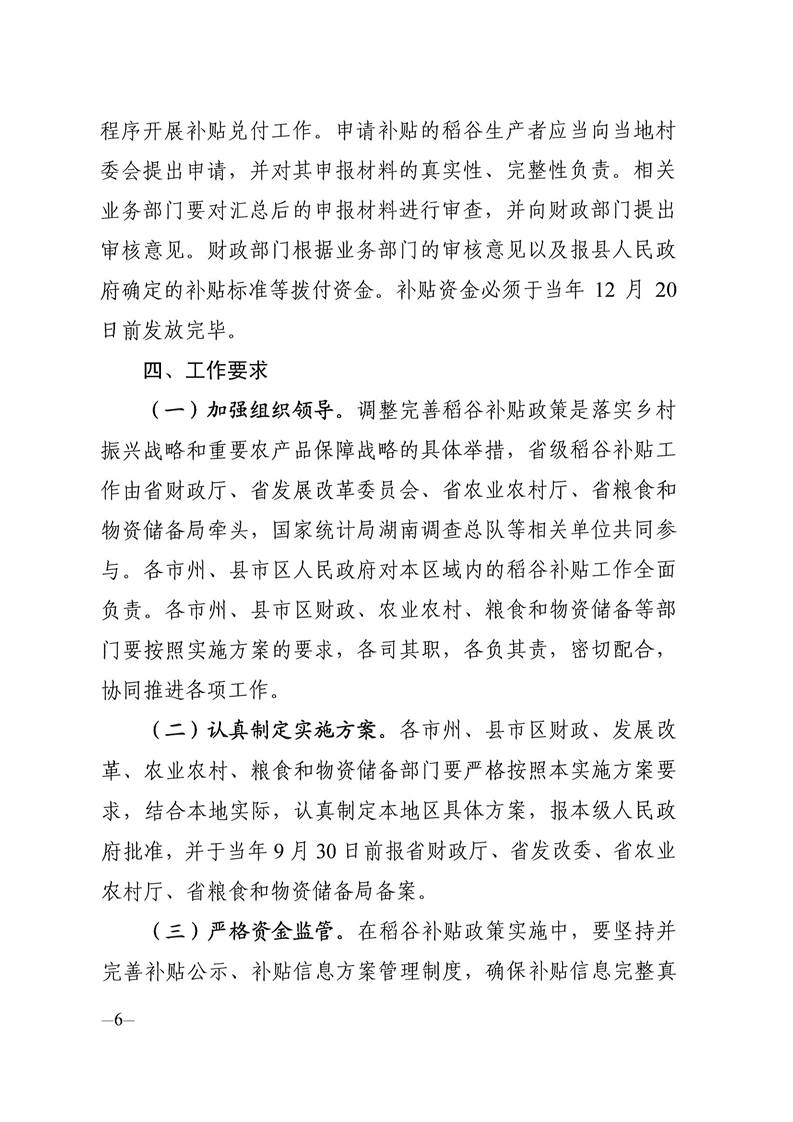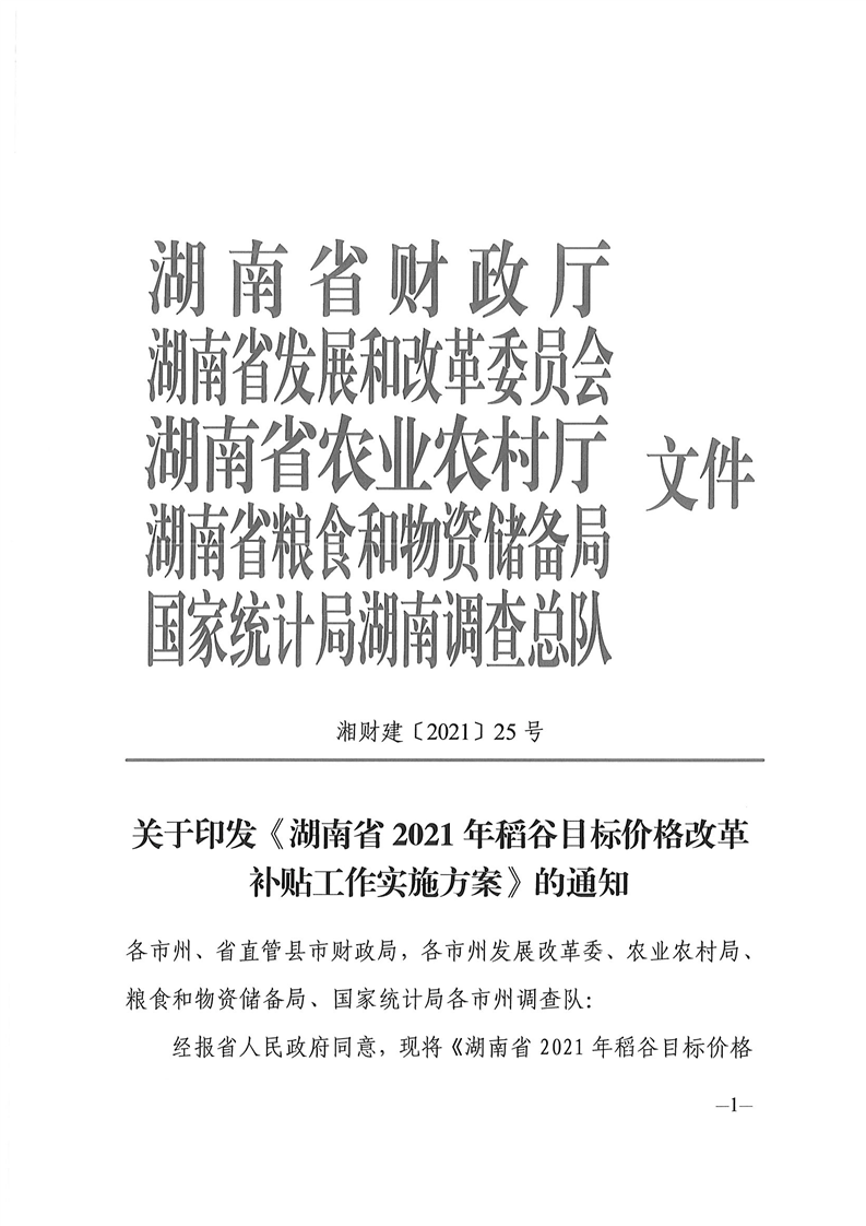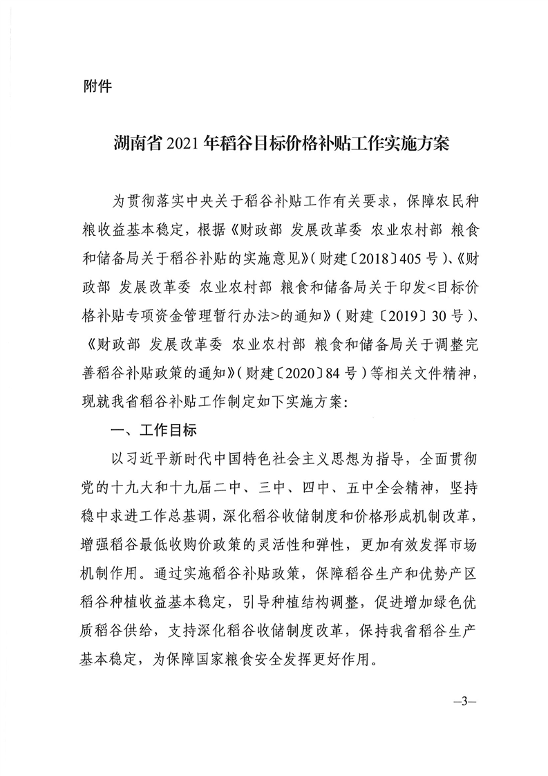 湖南省財政廳等五部門關于印發《湖南省2021年稻谷目標價格改革補貼工作實施方案》的通知