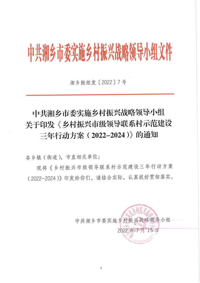 鄉(xiāng)村振興市級領(lǐng)導(dǎo)聯(lián)系村示范建設(shè)三年行動方案(2022-2024)