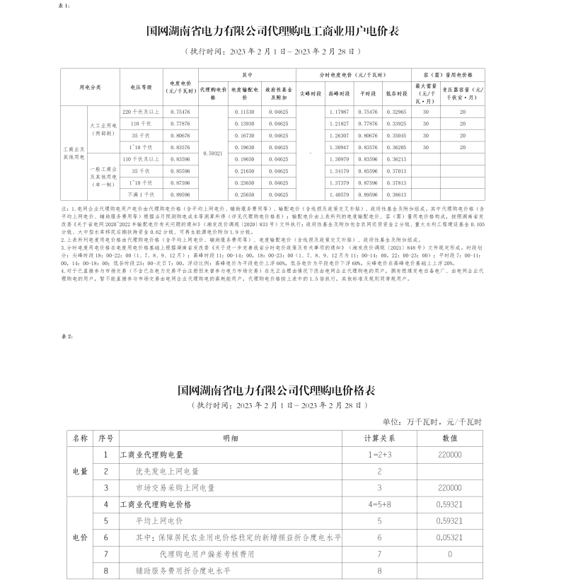 2023年2月代理購(gòu)電價(jià)格表